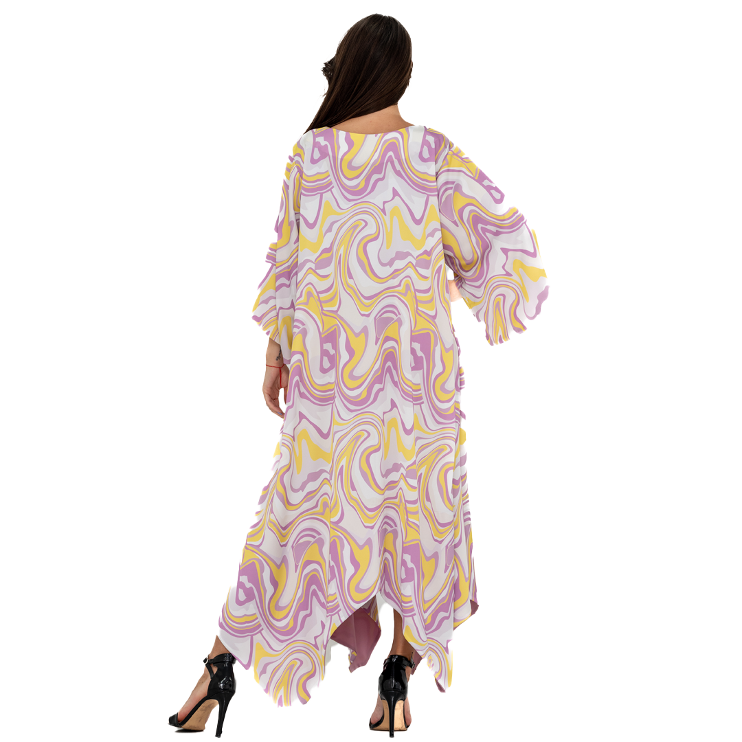 Whether you’re attending a garden party, enjoying a brunch date, or simply want to elevate your everyday style, our Chic Abstract Prints Kaftan promises to make you feel effortlessly beautiful. Pair it with sandals for a relaxed look or dress it up with heels and statement jewelry for a more polished ensemble.