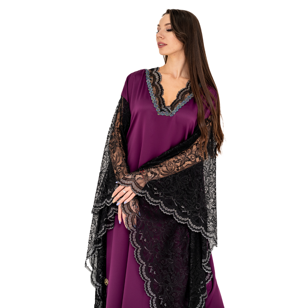 SKU: N/A Category: Pink Sapphire Tags: evening dress, kaftan, lace, long dress, purple
