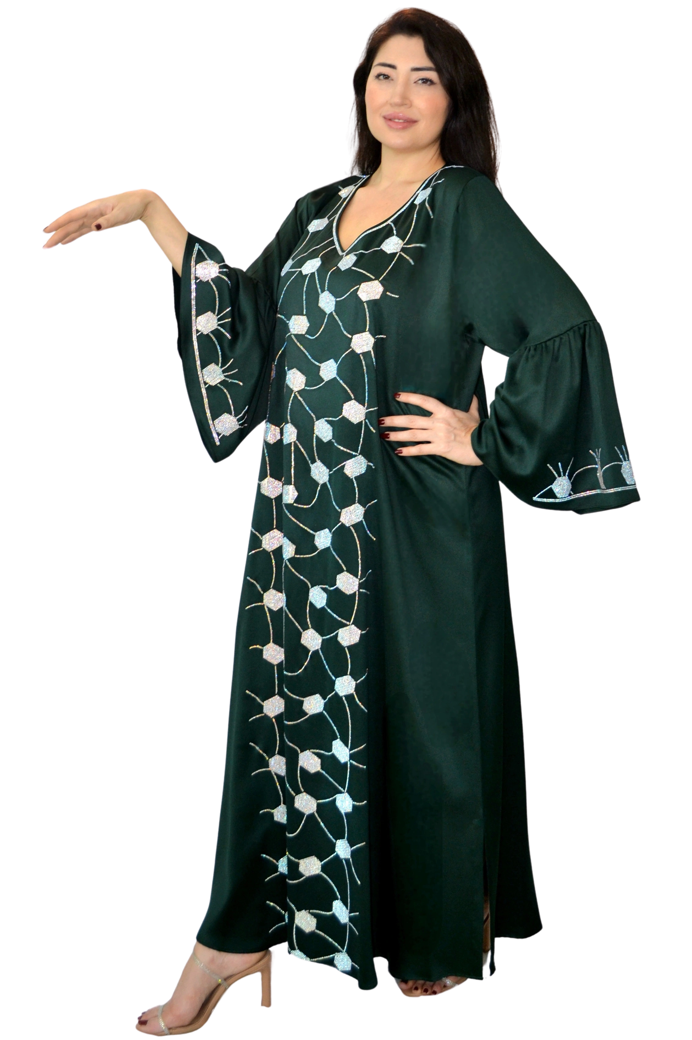 Luxury Embellished Kaftan - Emerald Green - Image 3