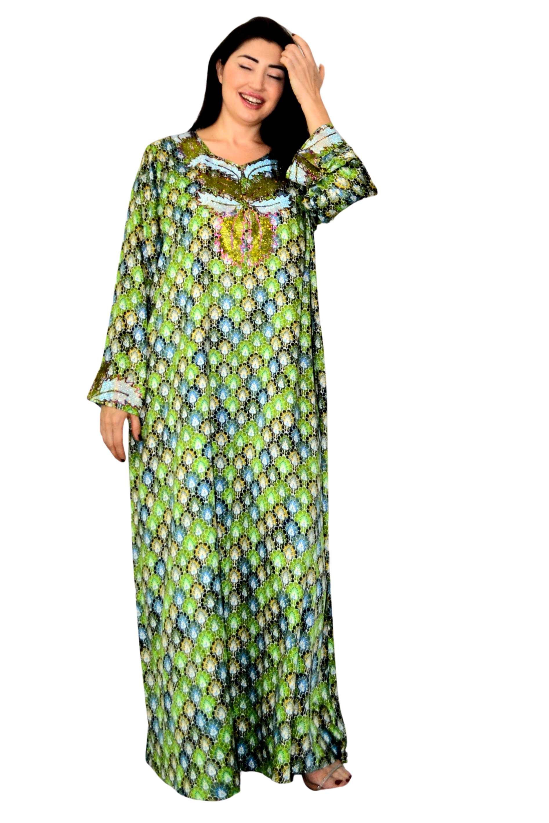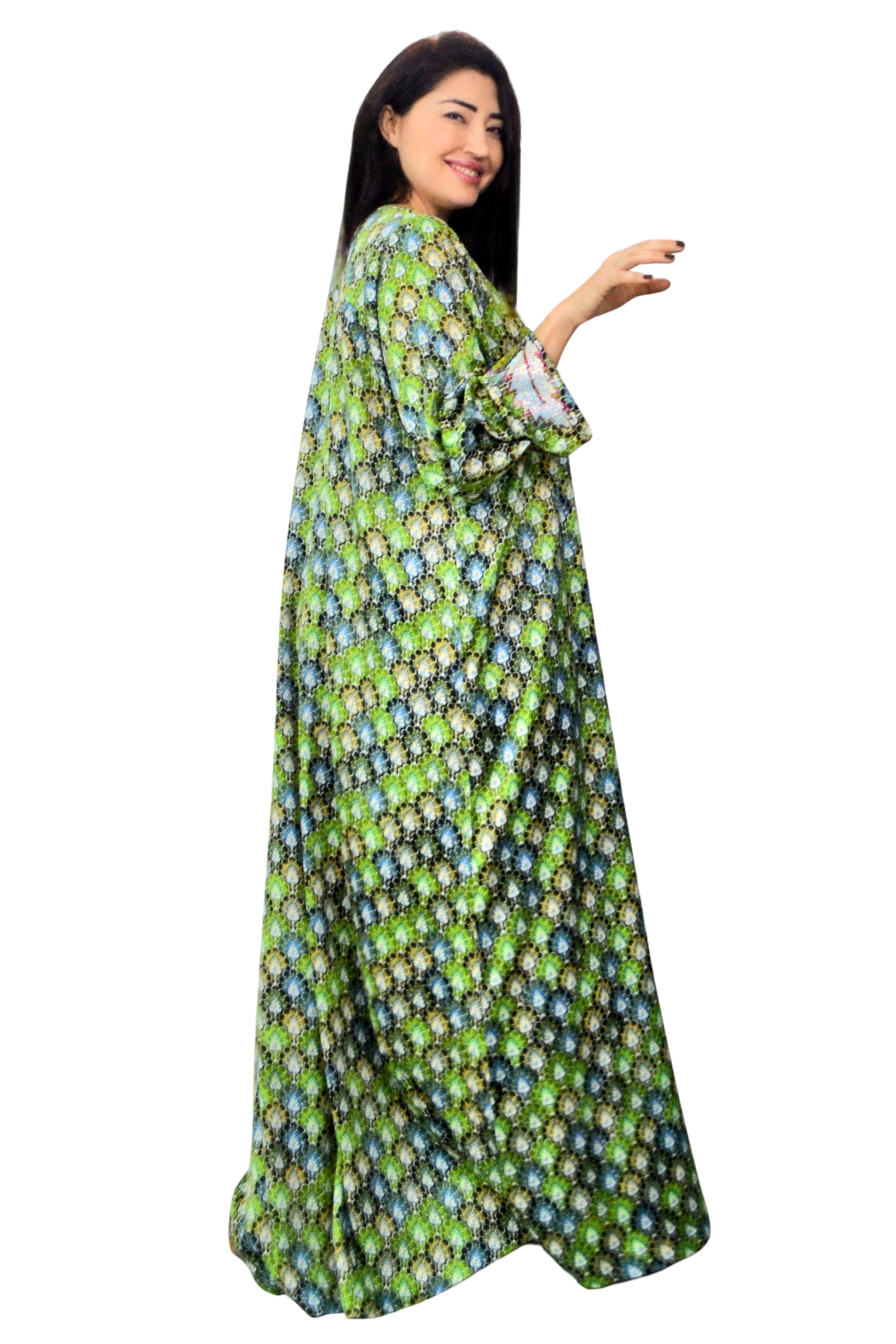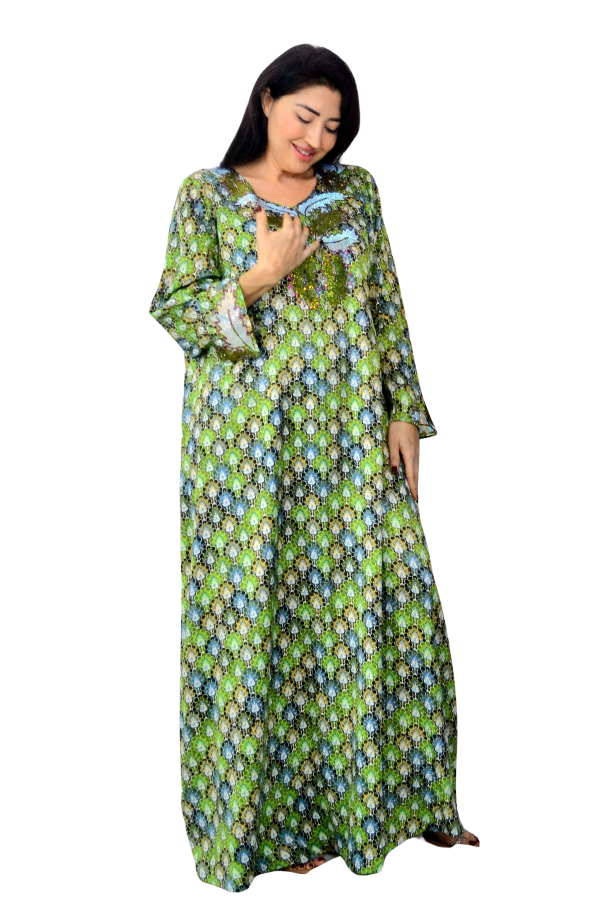 Whether you’re dressing up for a formal event or looking for luxurious yet comfortable attire, this embroidered kaftan is the perfect choice. Pair it with statement jewelry and heels for a glamorous look or wear it casually with sandals for a relaxed feel.